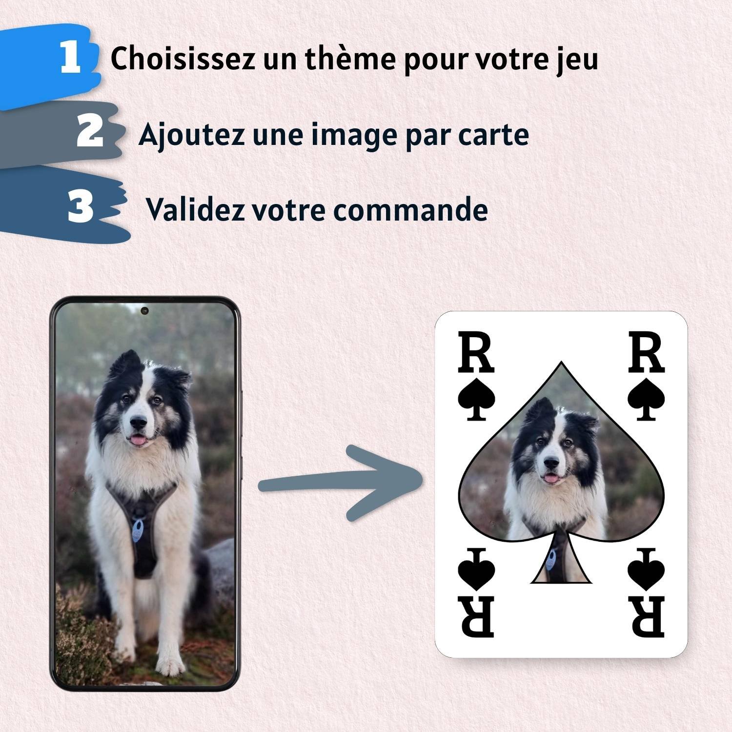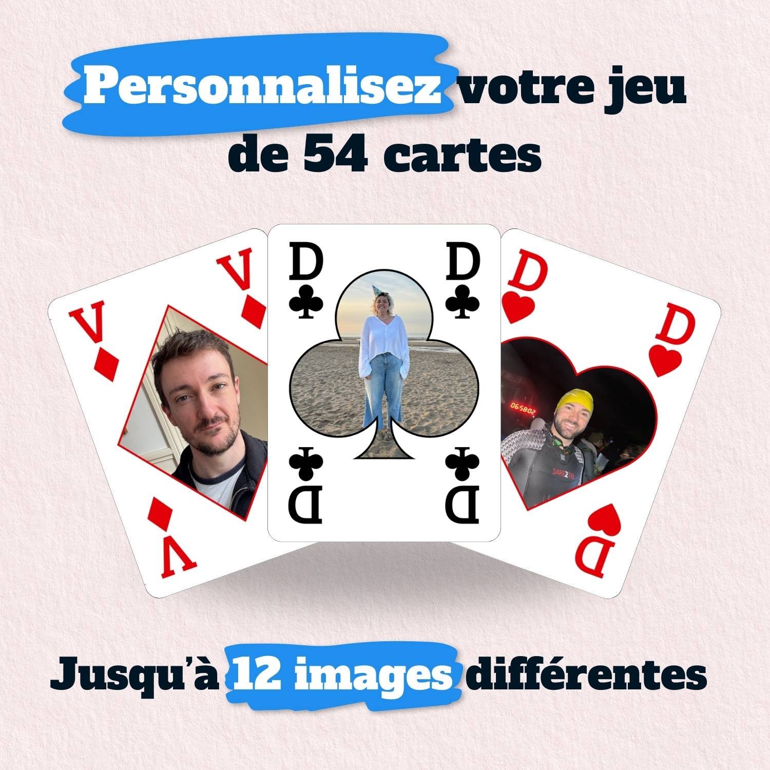 | 👑 Cartes personnalisées | 12 cartes à votre image (4 rois, 4 dames, 4 valets) |