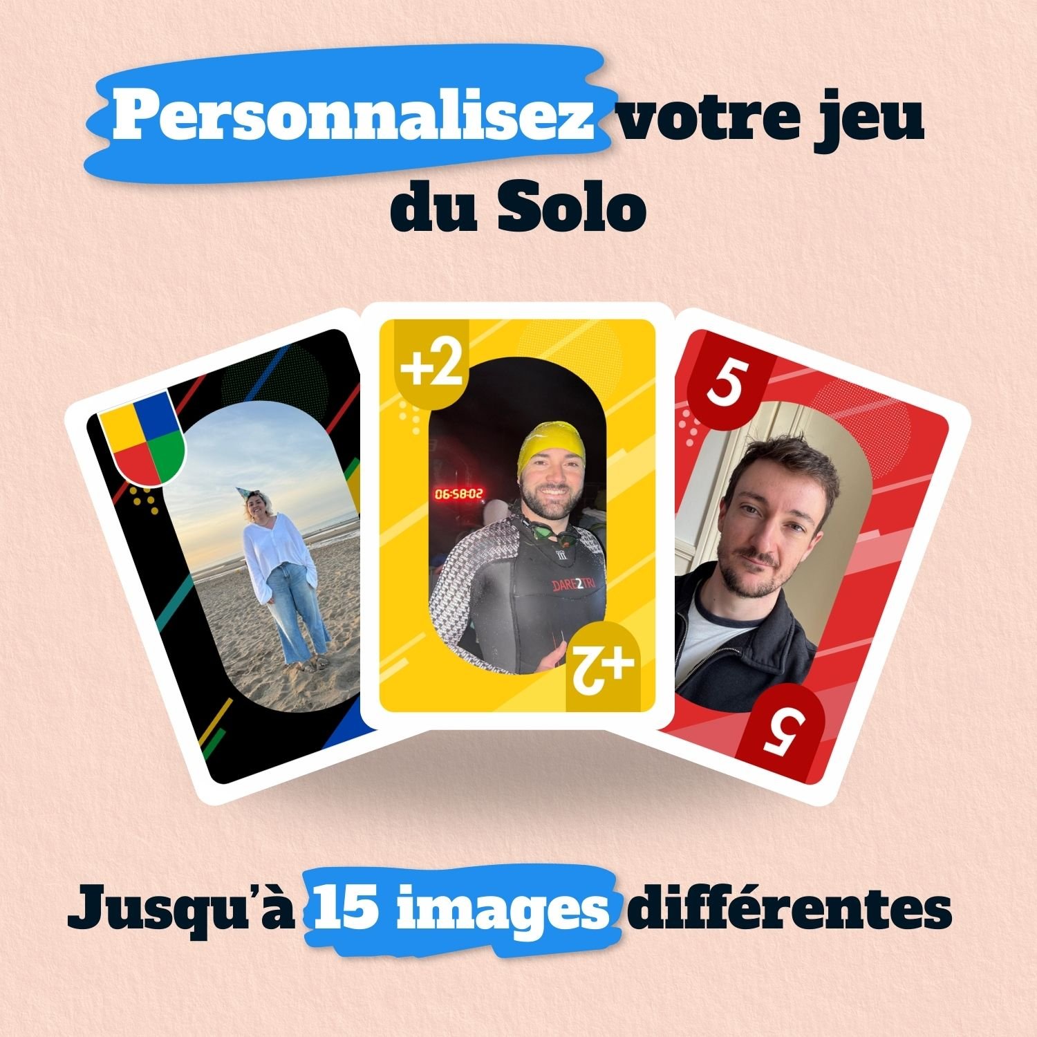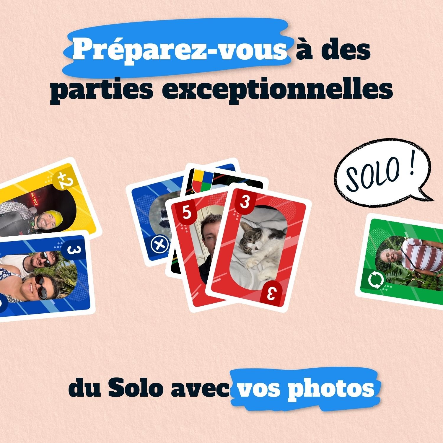 Le Jeu du Solo reprend la célèbre mécanique du Unø. Ici, chaque carte du paquet est personnalisée avec vos photos.