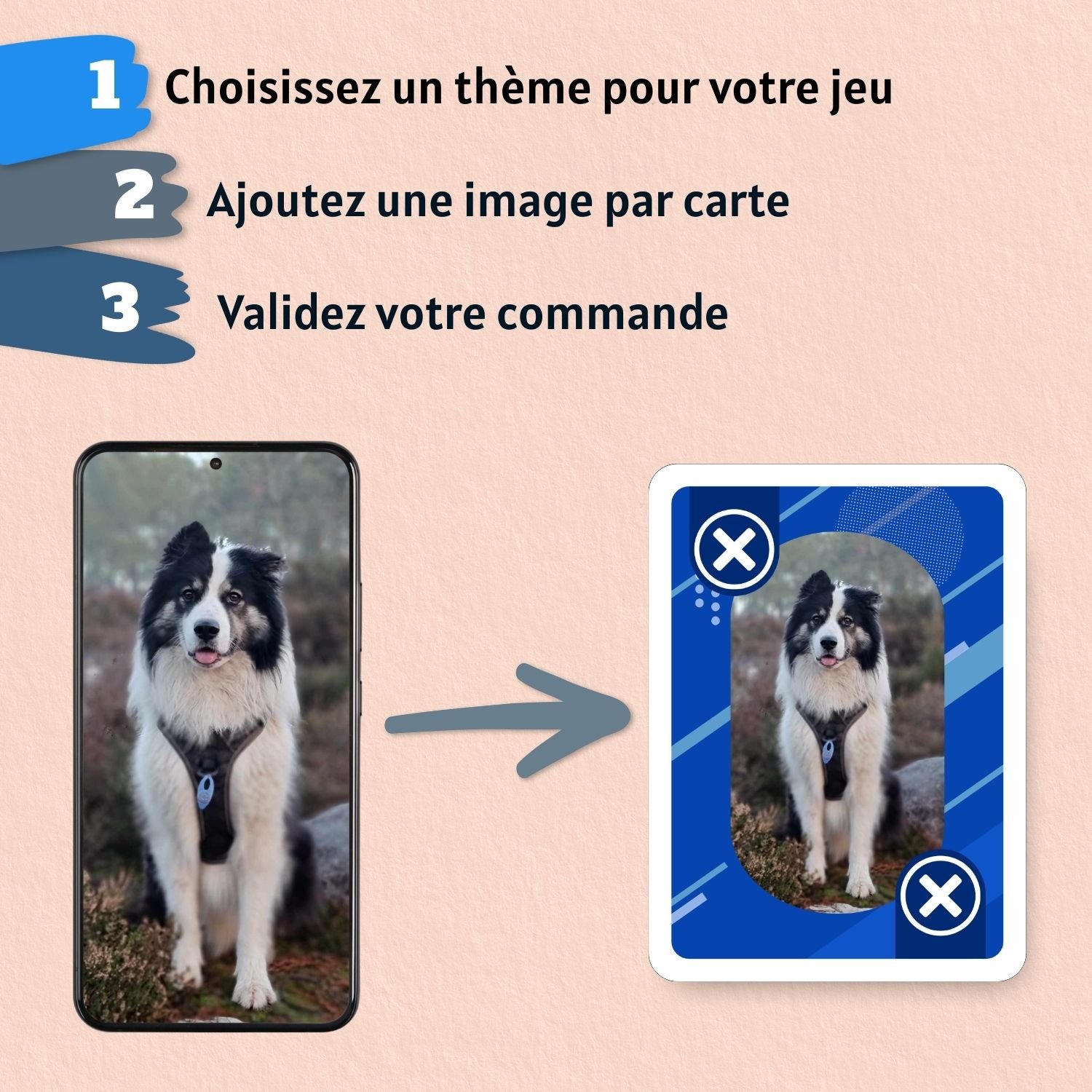 Un Unø entièrement personnalisé ! C’est un cadeau parfait pour un anniversaire, un mariage, un Secret Santa ou simplement pour faire plaisir… Un jeu unique, drôle, et totalement à votre image. Créez votre jeu personnalisé dès maintenant.